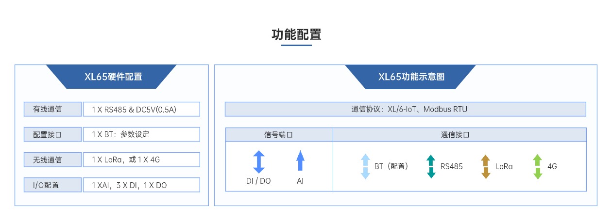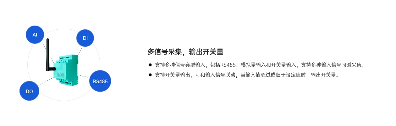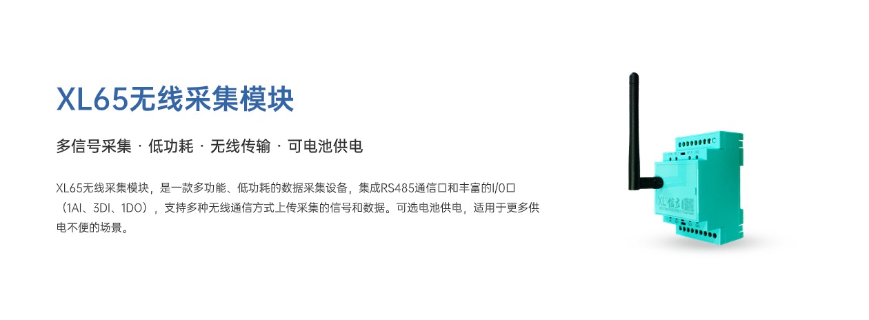 XL65無線采集模塊,是一款多功能、低功耗的數(shù)據(jù)采集設(shè)備,集成RS485通信口和豐富的I/0口(1AI、3DI、1DO),支持多種無線通信方式上傳采集的信號和數(shù)據(jù)??蛇x電池供電,適用于更多供電不便的場景。