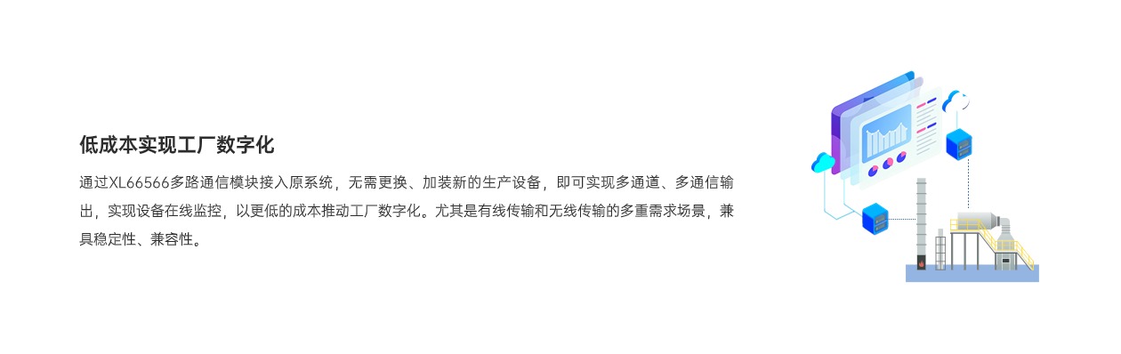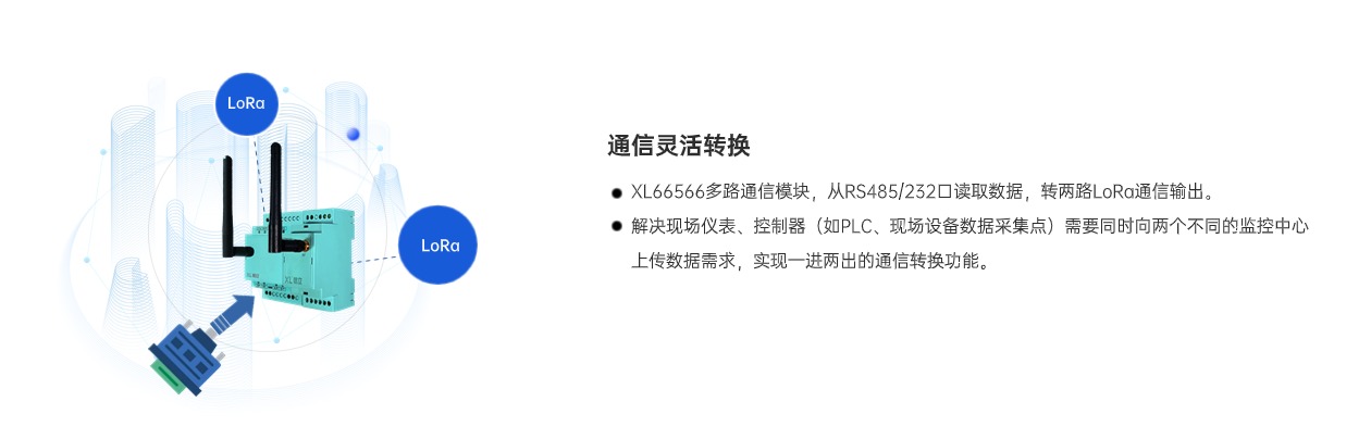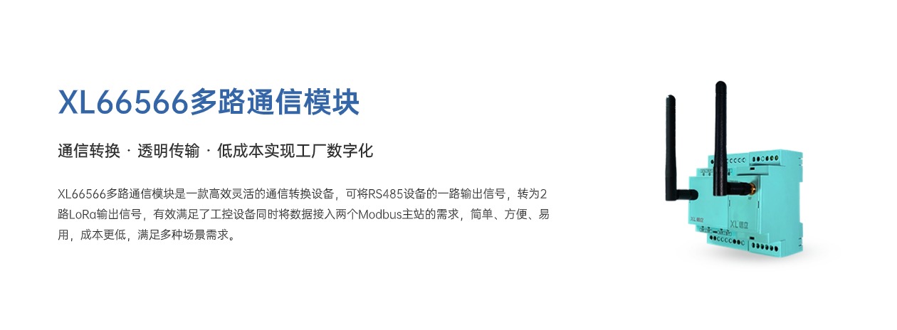 XL66566多路通信模塊是一款高效靈活的通信轉(zhuǎn)換設(shè)備,可將RS485設(shè)備的一路輸出信號,轉(zhuǎn)為2路LoRa輸出信號,有效滿足了工控設(shè)備同時將數(shù)據(jù)接入兩個Modbus主站的需求,簡單、方便、易用,成本更低,滿足多種場景需求。