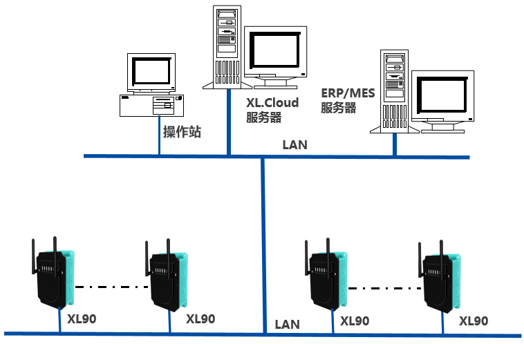 基于XIoT技術(shù)的貼片機電池電壓數(shù)據(jù)采集系統(tǒng),平臺由1套XL.Cloud軟件、1臺監(jiān)控服務(wù)器構(gòu)成;通信網(wǎng)絡(luò)多臺XL90物聯(lián)網(wǎng)關(guān),及LAN構(gòu)成。