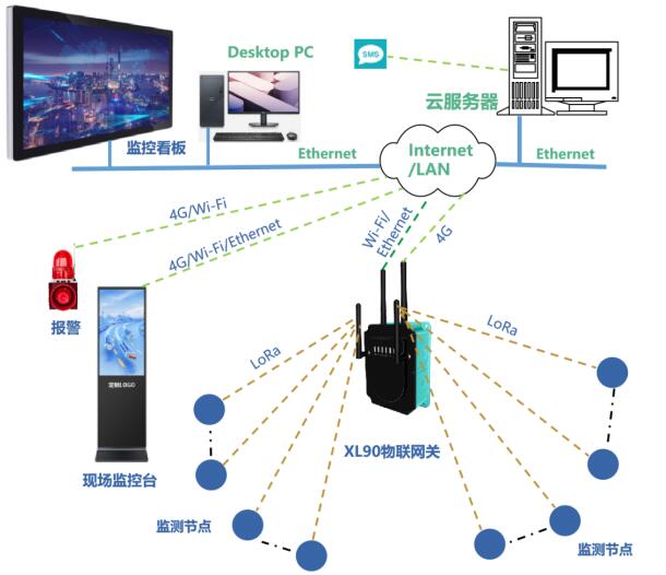 LoRa無(wú)線(xiàn)上傳溫度數(shù)據(jù),須選XL9X系列物聯(lián)網(wǎng)關(guān)作無(wú)線(xiàn)接收端,通過(guò)Ethernet、Wi-Fi、RS485,或4G通信方式,接入溫度監(jiān)控軟件平臺(tái),支持Modbus RTU/TCP、MQTT、SOAP、寫(xiě)數(shù)據(jù)庫(kù)等通信協(xié)議。 |