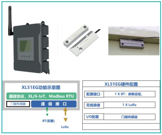 門(mén)開(kāi)啟監(jiān)測(cè):選擇低功耗無(wú)線(xiàn)門(mén)磁傳感器XL51EG實(shí)現(xiàn)。
