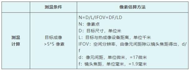測(cè)溫部位的目標(biāo)成像:>5*5個(gè)像素,測(cè)溫傳感器即可測(cè)溫。 |
