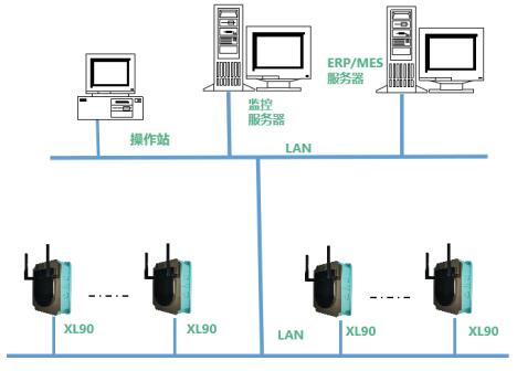 根據(jù)工廠局域網(wǎng)的分布,設計網(wǎng)關(guān)的安裝點,以XL90網(wǎng)關(guān)為通信中樞,構(gòu)建覆蓋數(shù)字化系統(tǒng)區(qū)域的工廠物聯(lián)網(wǎng)。
