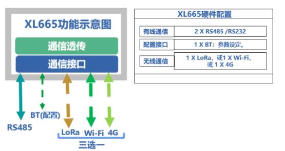 采用XL665無(wú)線轉(zhuǎn)化器,將一路RS485的輸出,轉(zhuǎn)換成一路RS485輸出和一路LoRa無(wú)線輸出,可同時(shí)與兩個(gè)系統(tǒng)或設(shè)備通信傳輸數(shù)據(jù)。