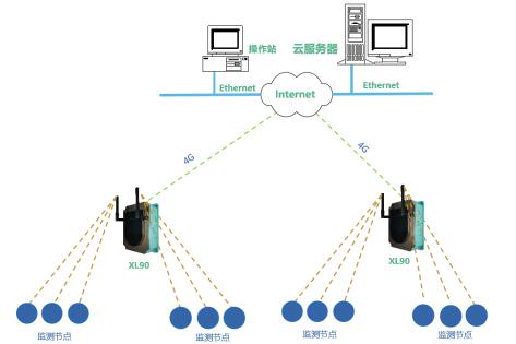 解決方案:XL90物聯(lián)網(wǎng)關(guān)無線讀取監(jiān)測節(jié)點的數(shù)據(jù),進(jìn)行處理、協(xié)議轉(zhuǎn)換,采用4G通信方式將數(shù)據(jù)直接推送至云平臺。